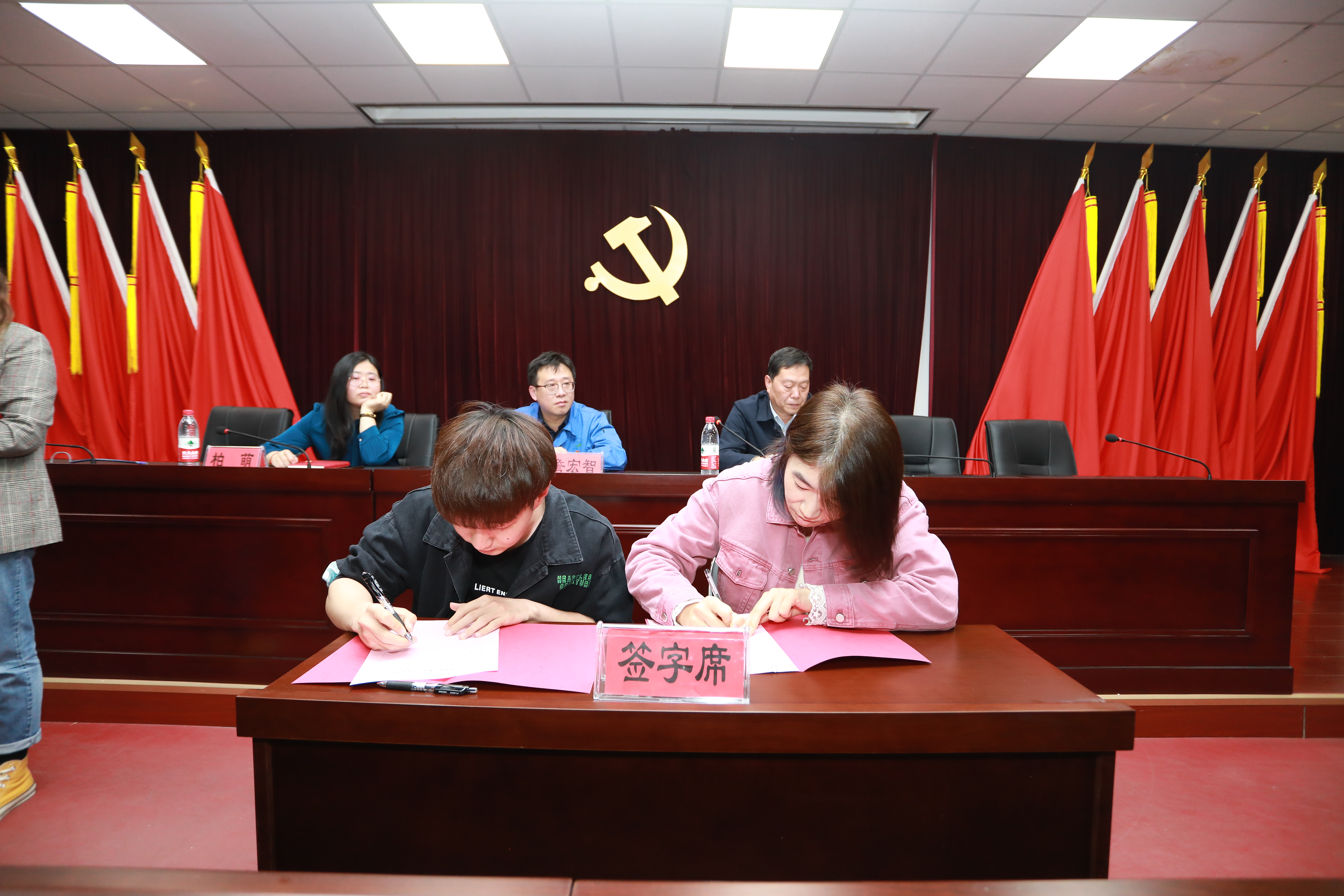 公司領(lǐng)導(dǎo)為培訓(xùn)導(dǎo)師代表頒發(fā)培養(yǎng)導(dǎo)師聘書,師徒代表在現(xiàn)場簽訂培養(yǎng)任務(wù)書。