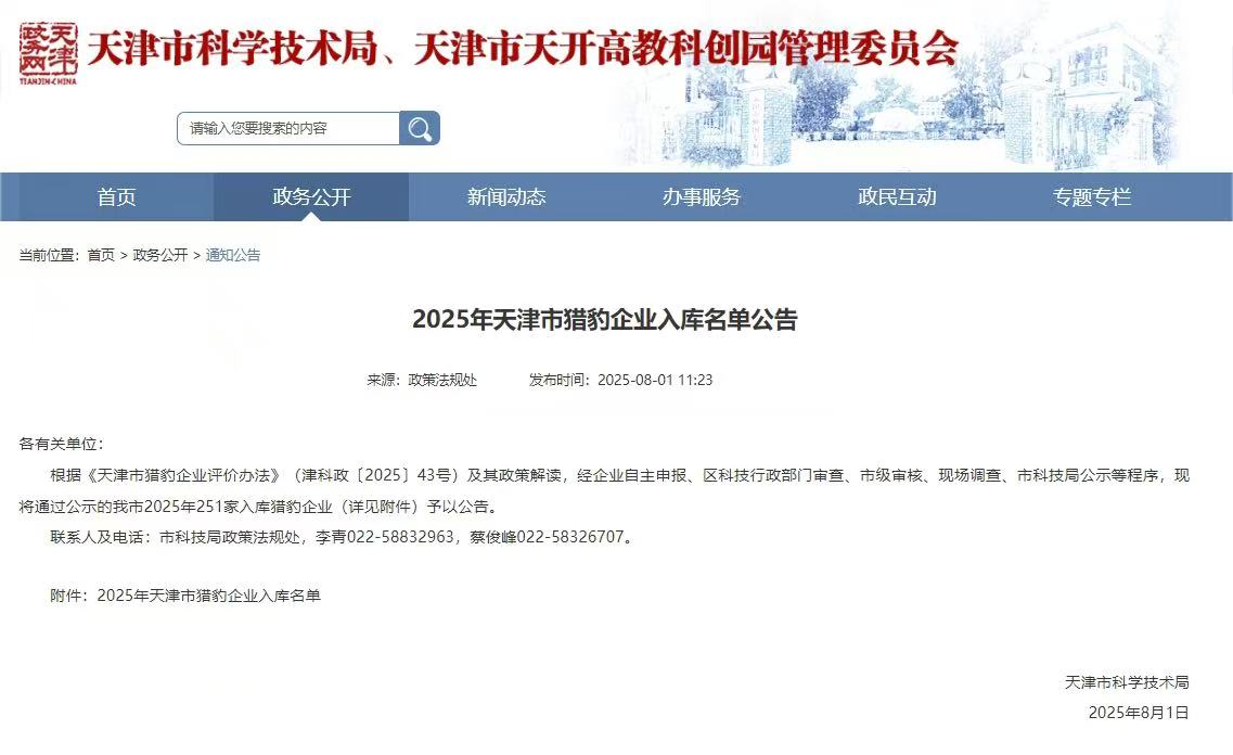 8月1日,天津市科學(xué)技術(shù)局公布了《2025年天津市獵豹企業(yè)入庫名單公告》。在渤化集團(tuán)、南開區(qū)科技局的大力支持下,我公司成功獲評入庫“天津市獵豹企業(yè)”。