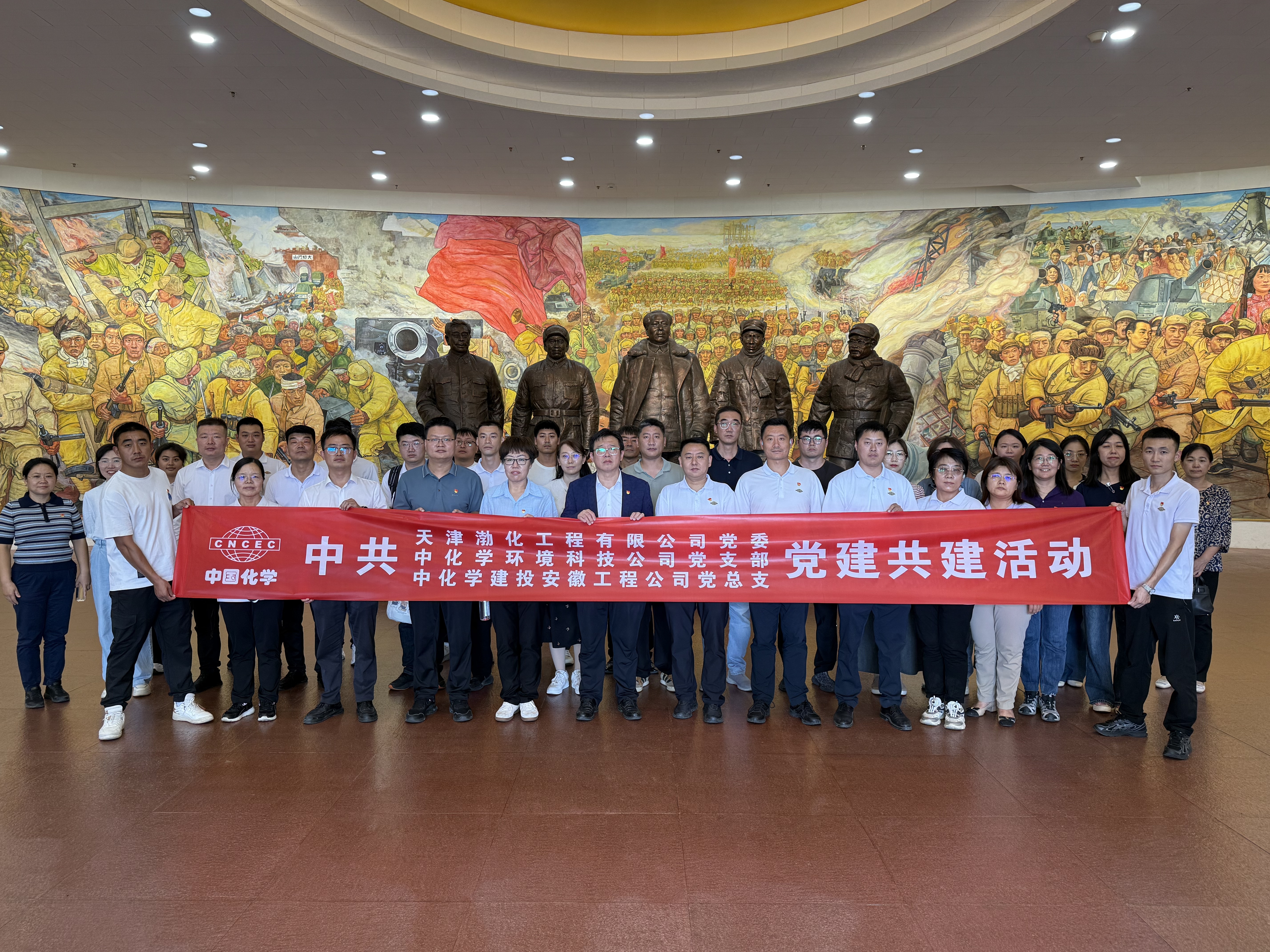 黨建引領聚合力 紅色賦能促發(fā)展——三企業(yè)聯(lián)合開展黨建共建活動 2025-10-09 22:32:31 9月30日,中國化學中化學環(huán)境科技公司黨支部、中化學建投安徽工程公司黨支部與天津渤化工程有限公司黨委聯(lián)合組織黨員干部赴天津平津戰(zhàn)役紀念館開展黨建共建活動,環(huán)境公司黨支部書記、董事長高志國,副總經理劉海濤,渤化工程黨委書記、董事長詹宏智等領導帶隊,共30余名黨員參加活動。 在新時代黨建引領下,共建各方將以此次合作為新起點,推動黨建資源與業(yè)務發(fā)展的深度融合,持續(xù)深化紅色文化賦能發(fā)展實踐。我們堅信,這種以紅色基因為紐帶、以黨建合力為引擎的合作模式,必將為高質量發(fā)展注入強勁動能,在新時代的征程上共同書寫更加輝煌的奮斗篇章。